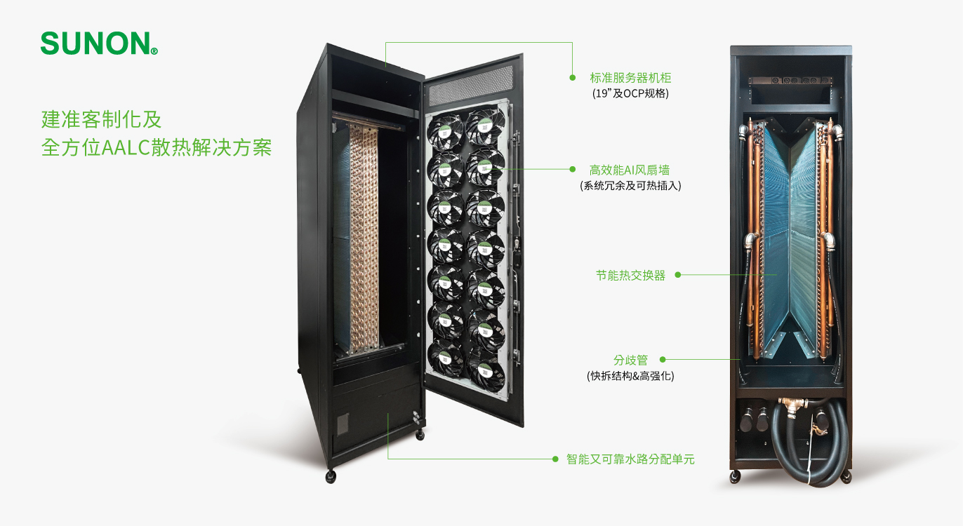 面對日益擴張的AI運算應用,傳統數據中心的氣冷散熱技術無法有效解高算力CPU和GPU的熱,服務器運作產生大量能耗和無法迅速排出廢熱等問題,導致運算效能降低、服務器當機或停機、營運成本增加等風險危機;全液體冷卻方案如浸沒式雖可滿足新世代機房不斷攀升的冷卻需求,但采用先進冷卻技術的投資成本高昂且系統兼容性有待商確,因此,數據中心綠色升級之關鍵是如何在有限資源下選擇極大效益的最適冷卻技術,旨在確保服務器能有效運行,且達到降低電力需求及減少碳排放。液體輔助空氣冷卻(AALC, Air-Assisted Liquid Cooling)是現行權宜之策,優點是能在保留數據中心原有的冷卻設備架構和基礎設施的情況下,有效融合既有的氣冷方案和先進液體冷卻系統,協助客戶在有限預算下提升整體機房的冷卻性能以符合全球市場需求。